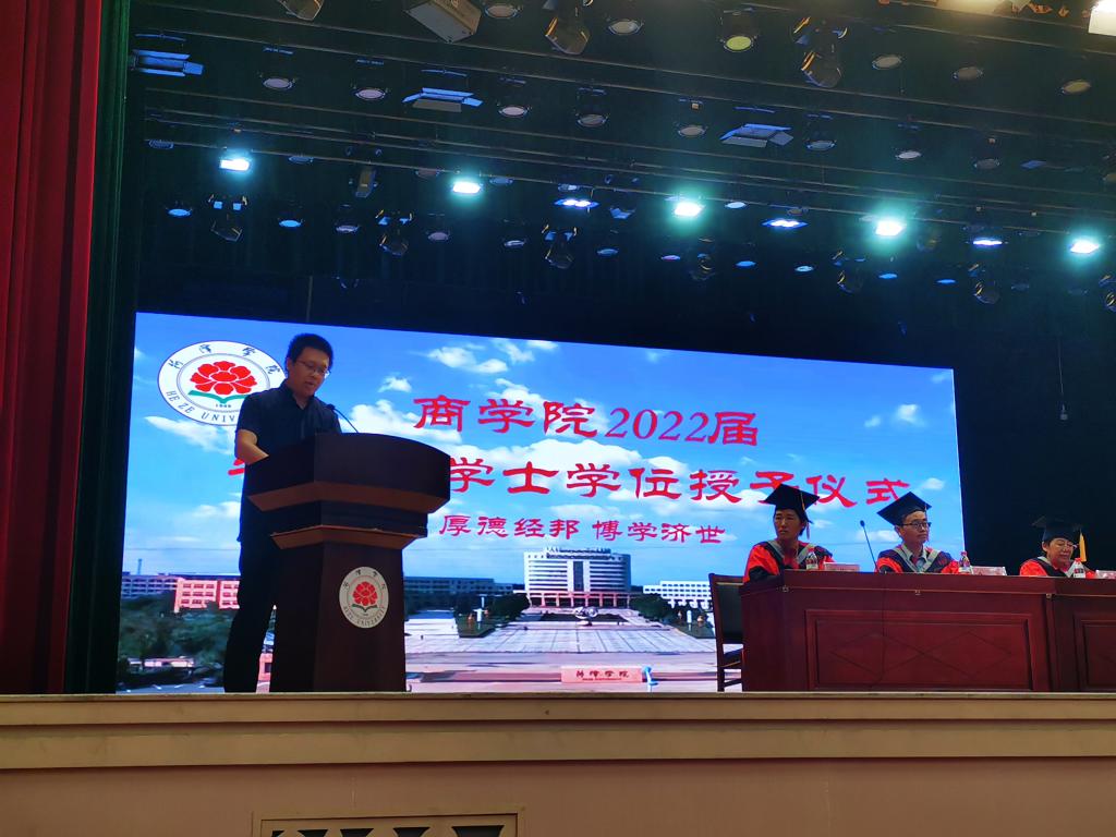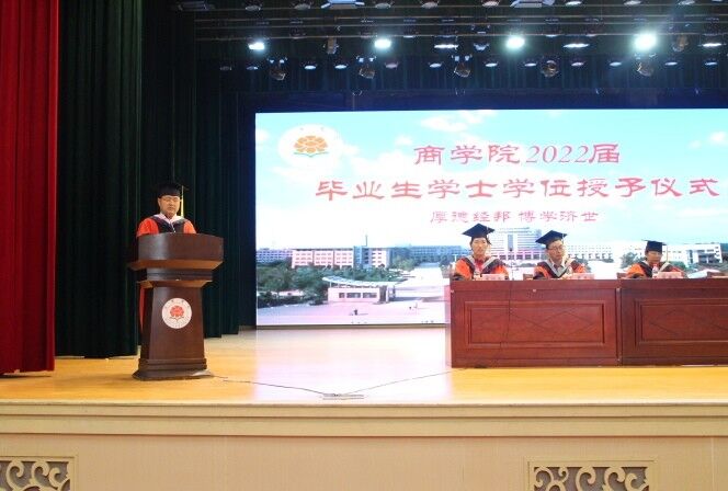 又值毕业季,6月10日下午两点,太阳成集团tyc97282022届毕业生学士学位授予仪式在艺术实训中心演播厅以及线上直播平台同步举行。公司党委副书记、经理田建军,党委副书记刘惠娟,太阳成集团tyc9728经理助理洪梅香博士,太阳成集团tyc9728管理系主任张素云教授,经济系主任贺珍瑞教授,物流管理专业主任桑圣举教授,市场营销专业主任卢智慧教授以及太阳成集团tyc9728教师代表、辅导员和毕业生代表出席本次仪式,共同见证和分享优秀学子顺利完成学业、开启人生新篇章的欢欣与喜悦。