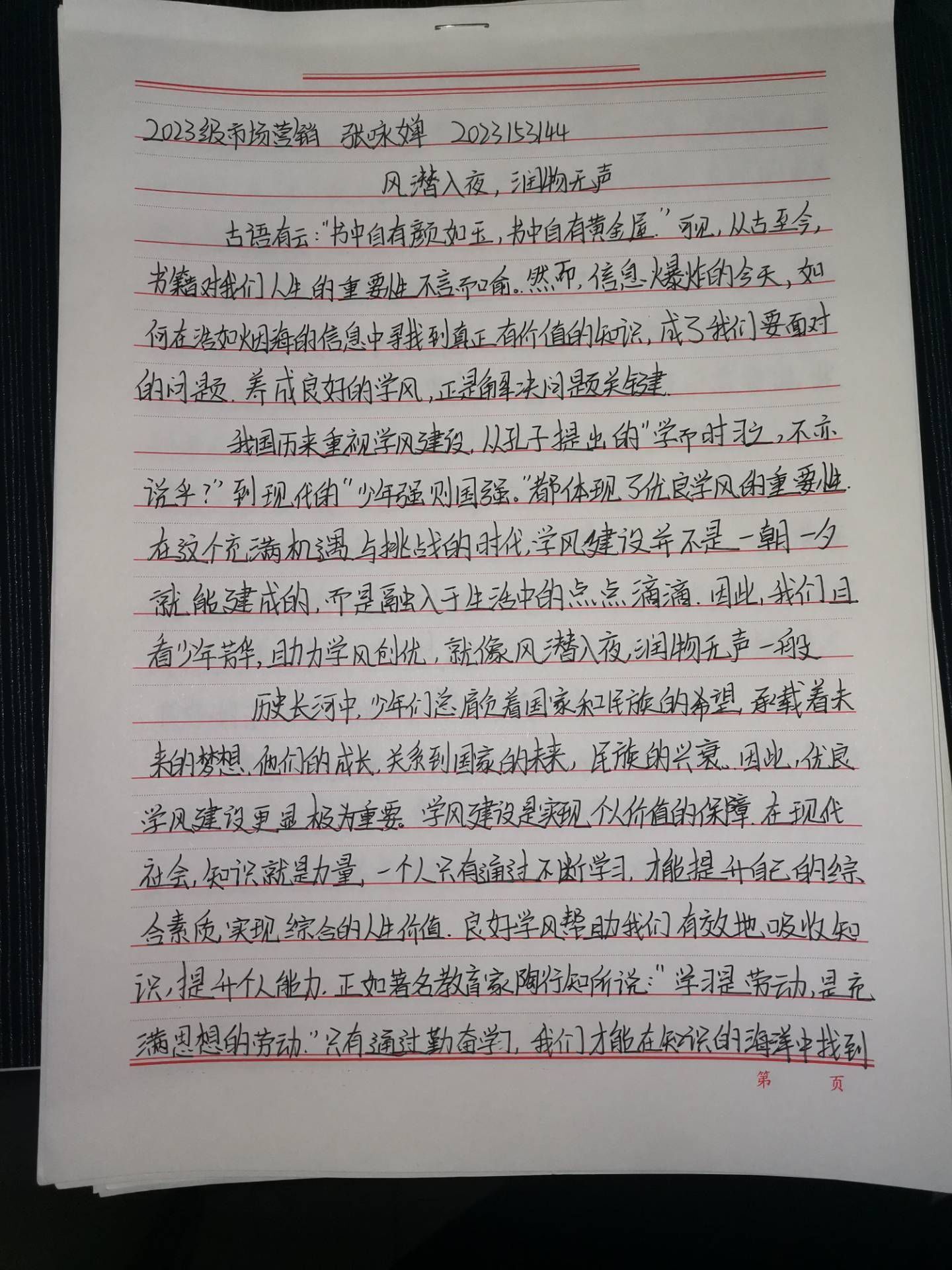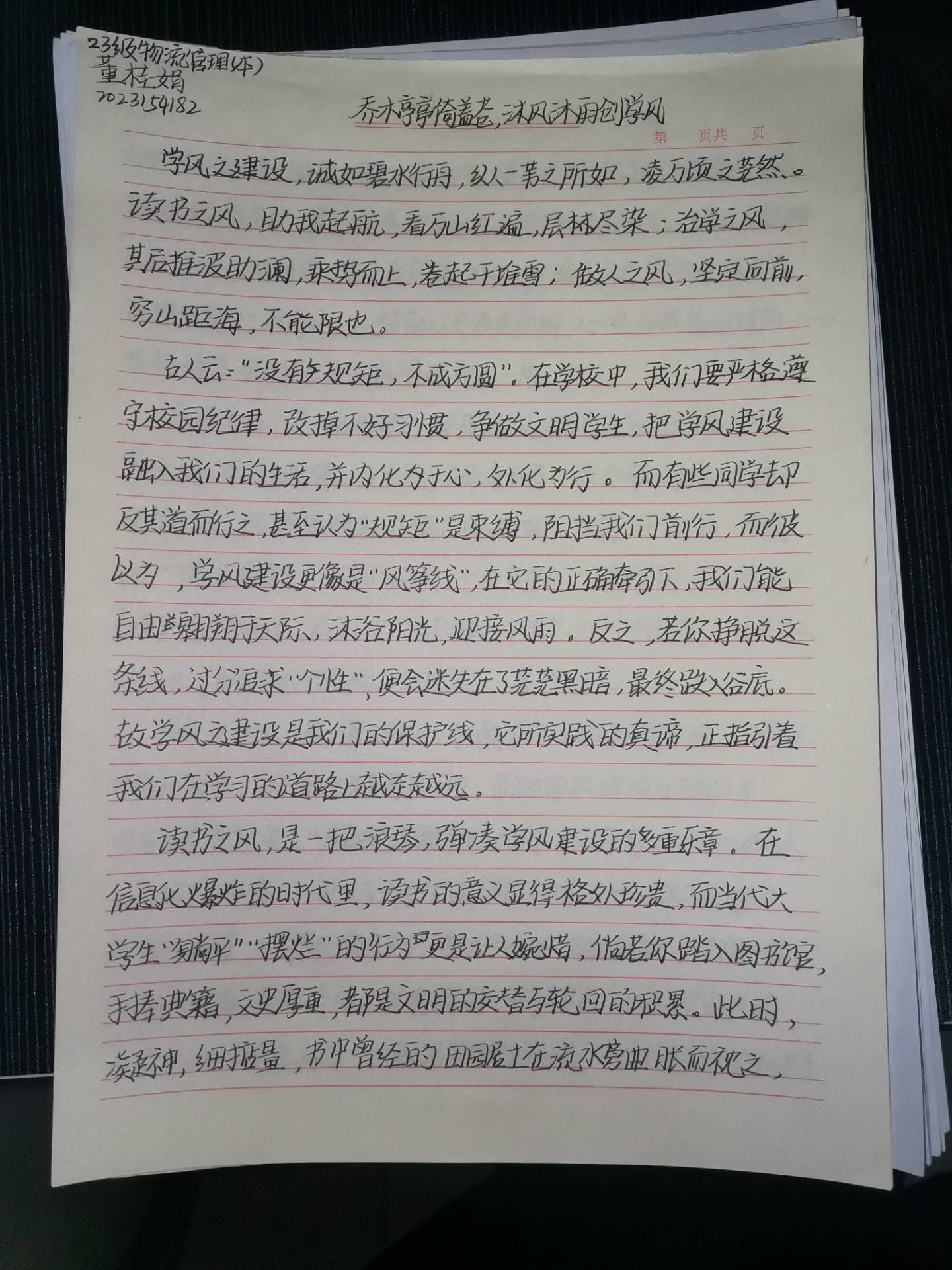 参赛同学的征文紧扣本次征文活动的主体,篇章布局紧凑有序,构思新颖,内容层次分明,引人入胜,精准用词,文字流畅,充分展现了参赛同学们的写作功底,以及对学风建设的深感体会与感悟,同时,本次征文活动有利于增强同学们对学风建设活动的认同感与归属感,提高同学们投入学风建设月活动的积极性。