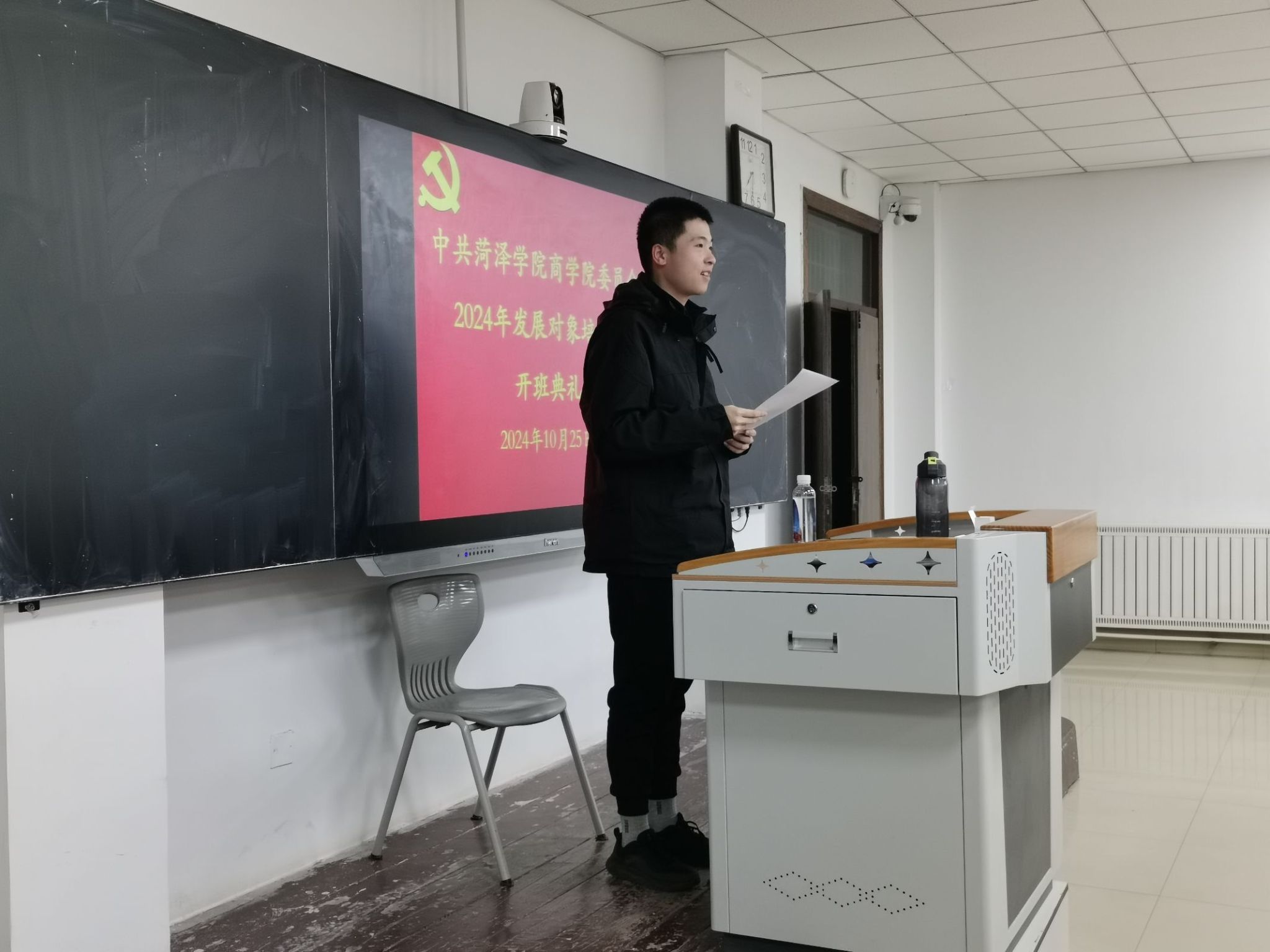 党员发展对象代表2022级物流管理专业李桐通过分享入党动力和目标,提出要提高思想觉悟,珍惜来之不易的学习机会,认真接受党的教育,积极向党组织靠拢。