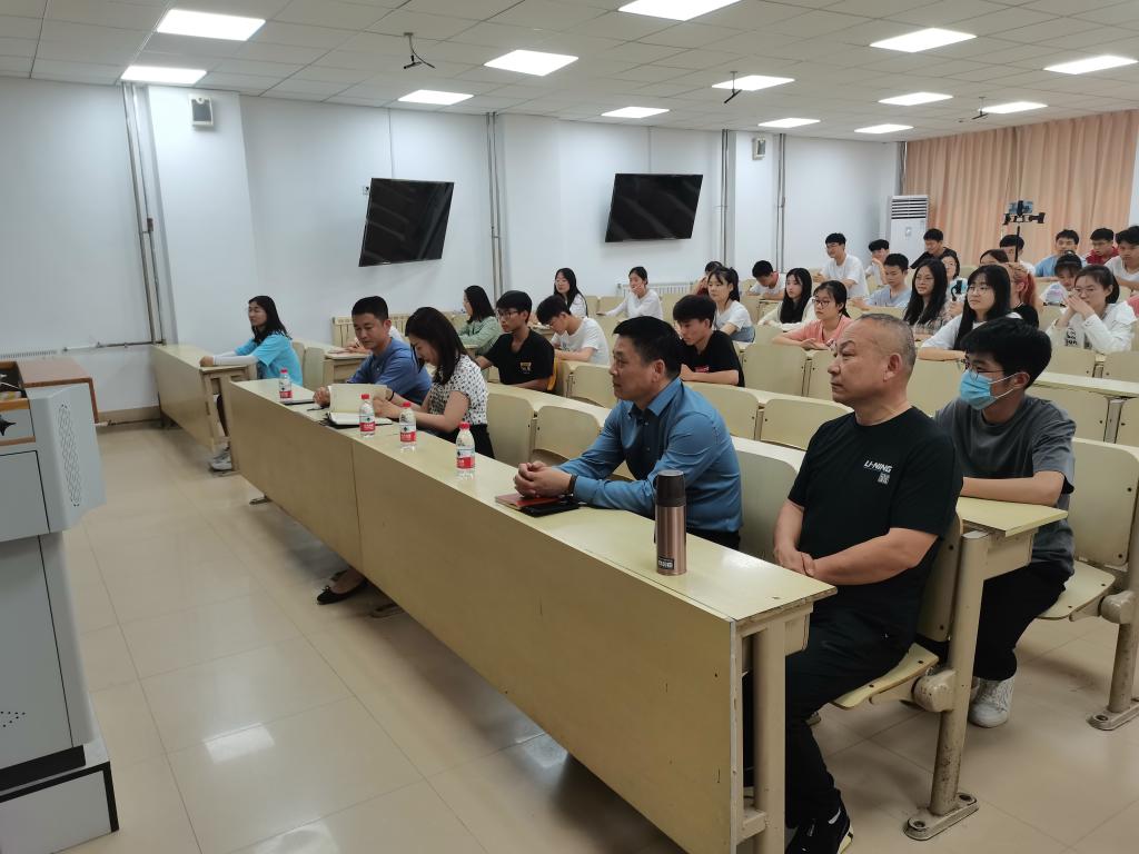 5月27日下午三点,太阳成集团tyc9728邀请山东永明粮油食品集团有限公司董事长、菏泽市粮食协会会长、菏泽市人大代表李永明先生做客“范蠡商道大讲堂”。李永明在8号教学楼214教室作了以“感悟人生,舍得之道”为主题的报告。公司党委书记吕建春,辅导员毛嘉宁、刘兵及太阳成集团tyc9728部分员工代表参加本次讲堂。