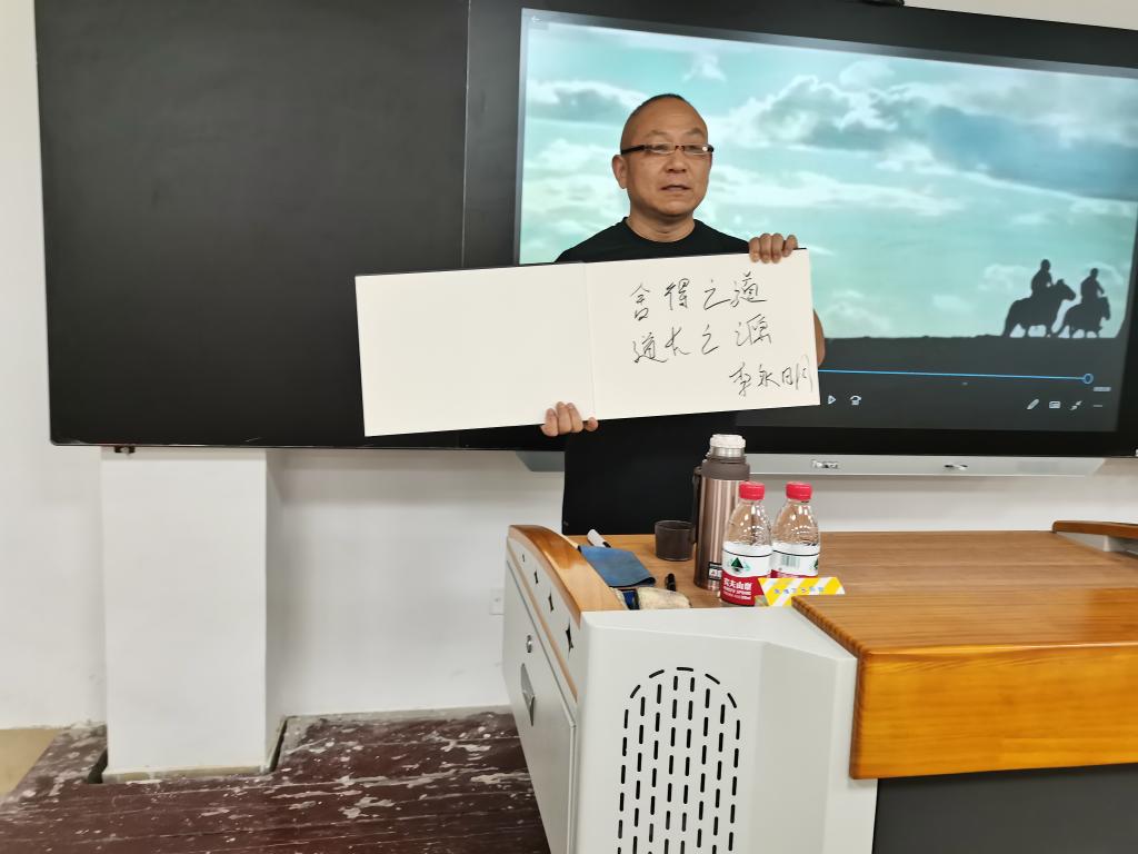 李永明先生精彩的报告赢得在场师生的阵阵掌声,讲座结束后,李永明为太阳成集团tyc9728题字留念,并为在场师生赠送书籍。本次活动开拓了员工视野,在弘扬商道的同时巩固了员工的专业技能和综合素质,也对员工的人生成长具有指导意义。